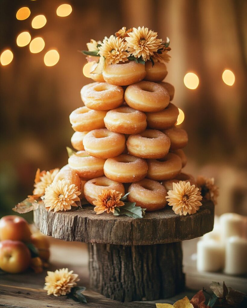 At cocktail hour, we set up a handwritten recipe station where guests could take home the recipe for Anika’s grandmother’s braised short ribs — the dish they made on their first date. The escort cards were stamped with a small apple and hung from a branch display that James built himself the week before the wedding. The cake was not a cake at all but a tower of apple cider donuts from a local farm stand, which I would argue is a better choice in every possible way.